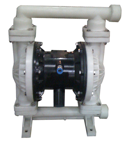 QBY型塑料气动隔膜泵是一种新型输送机械,是目前国内最新颖的一种泵类。采用压缩空气为动力源,对于各种腐蚀性液体,带颗粒的液体,高粘度、易挥发、易燃、剧毒的液体,均能予以抽光吸尽。其性能参数与联邦德国的 WLLDENPVMPS、美国的MARIOWPUMPS相近.本公司目前已形成系列化生 产,共有八种规格直径:¢10mm(3/8")、¢15mm(1/2")、¢25mm(1")、¢40mm(11/2")、¢50mm(2")、¢65mm(21/2")、¢80mm(3")、¢100mm(4")。四种材质、铝合金、铸铁、工程塑料、不锈钢。根据不同液体介质分别采用丁晴橡胶、氯丁橡胶、氟橡胶、聚四氟乙烯。以满足不同用户的需要。自1986年投产以来,已被国内一千多家石油、化工、电子、陶纺织系统单位采用,安置在种特殊场合,用来抽送各种常规泵不能抽吸的介质,均取的了满意的效果。