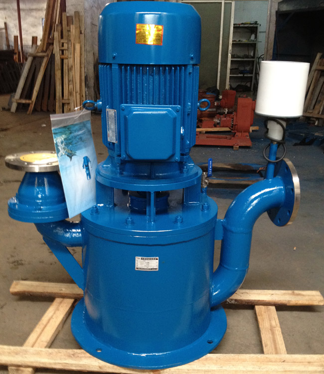 LZW型无密封自控自吸排污泵主要由泵体、叶轮、泵盖、导叶、副叶轮、泵轴、连接架、停机密封、电动空气控制阀等部分组成。该泵体内部由吸入室、储液室、气液分离室等部分组成。泵在正常起动后,叶轮将吸入室所存的液体及吸入管路中的空气一起吸入,液体混合气体在叶轮高速旋转的离心力作用下经导叶抛入气液分离室,由于流速突然降低,气体与液体的比重不同,较轻的气体从混合液中分离出来并被排出泵外,脱气的液体重新进入工作腔与叶轮内部从吸入管路中吸入的空气再次混合,在叶轮的旋转的作用下,很快使泵体入口形成一定的真空度,从而达到自吸的目的。由于该泵具有独特的排气功能,因此该泵能输送含有气体的液体并无须安装底阀。该泵配有“电动空气控制阀”运行时,控制阀关闭,实现密封;停机后控制阀打开,破坏了吸入管路中的真空,防止停机后泵腔内的液体因缸吸作用而众吸入管路流出,使泵腔内保存足够的液体来断续完成自吸过程,从而实现了“首次引流、永久自吸”。